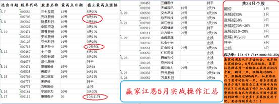 附圖:5月份操作個股總結,單月成功率繼續穩定在80%以上:
