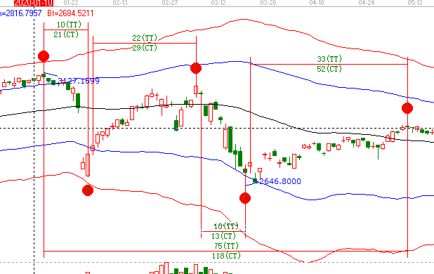 是否可以預(yù)期一下,下個(gè)循環(huán)時(shí)間:下跌+上漲=循環(huán)平均值≈38TT(40天左右);如果最猛烈的下跌時(shí)間是10TT左右,那么從5.19日算起,6.1日應(yīng)該是下一個(gè)低點(diǎn)時(shí)間。(這里5.11-5.19這段時(shí)間,不知道怎么處理,但歸到下跌時(shí)間內(nèi)又不合適)。