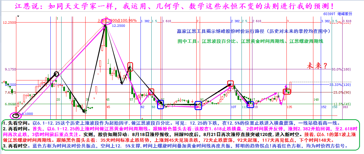 贏家江恩工具揭示繼峰股份時價運行路徑(歷史對未來的掌控均在圖中)