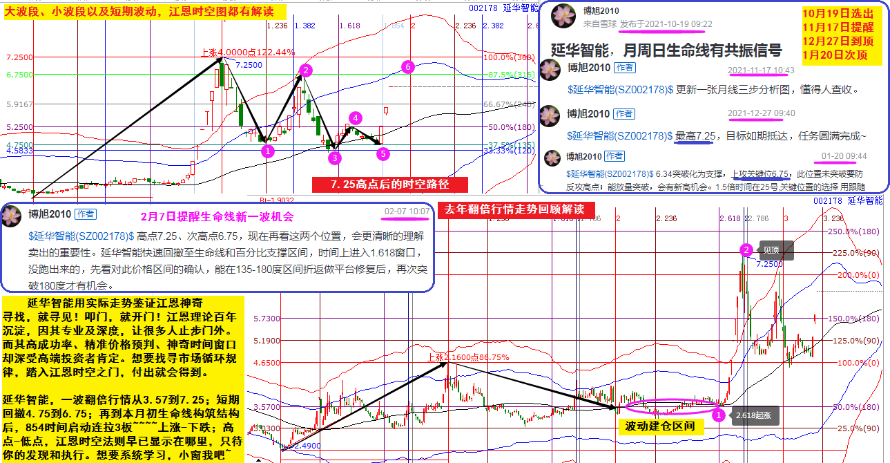 延華智能,一波翻倍行情從3.57到7.25;短期回撤4.75到6.75;再到本月初生命線構筑結構后,854時間啟動連拉3板~~~~上漲-下跌;高點-低點,江恩時空法則早已顯示在哪里,只待你的發現和執行。