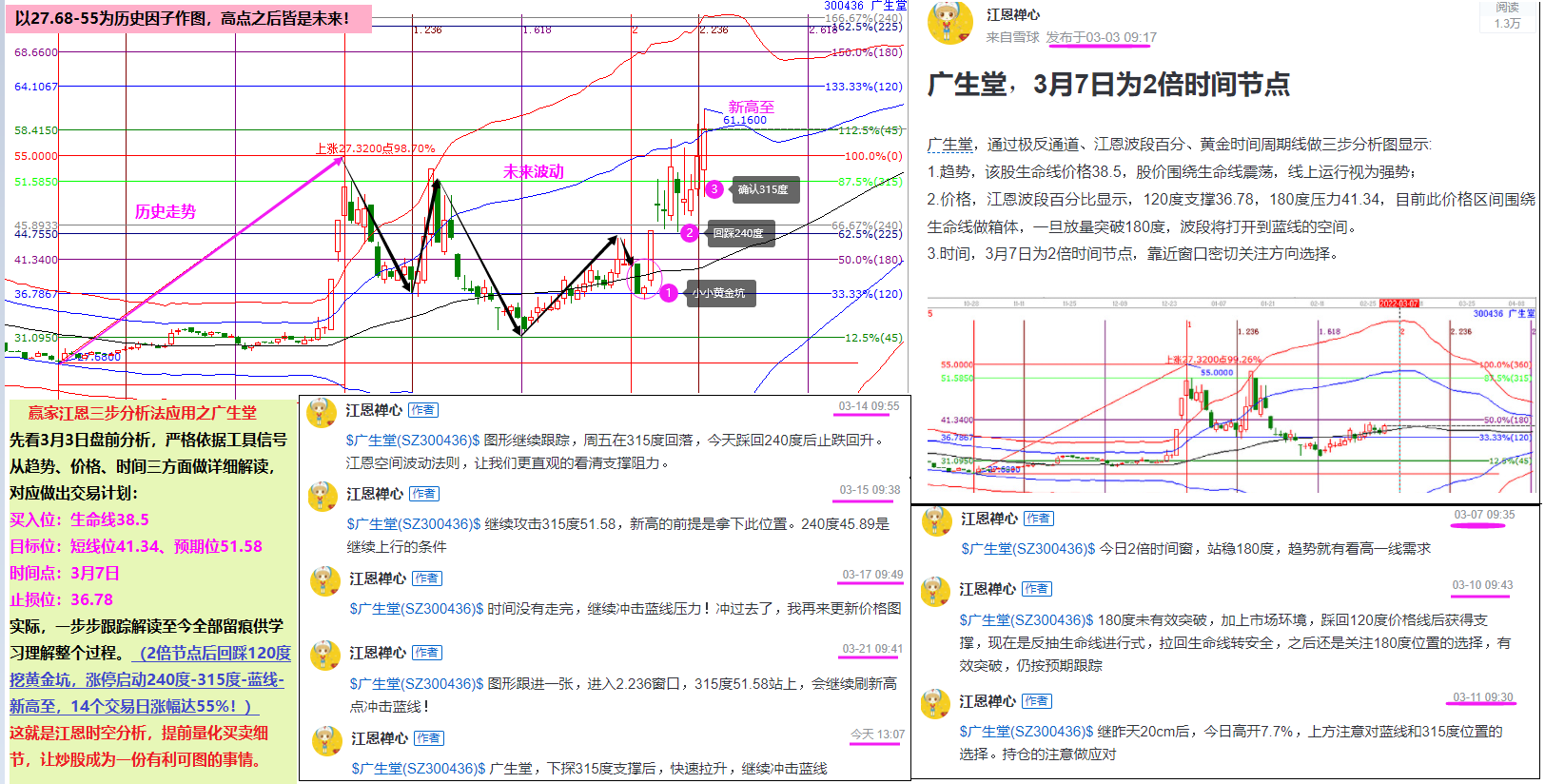 3月3日按照江恩規則分享學習:時間點站上生命線已經給出趨勢轉強信號,貼生命線就是關注點。但,指數快速下行,個股全面殺跌,該股也擊破生命線同步調整!