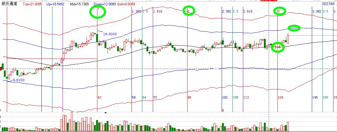當時價關系達到一定的和諧,個股就會出現趨勢性波動,我們依據規則選出的002396來講解時間與價格的關系。