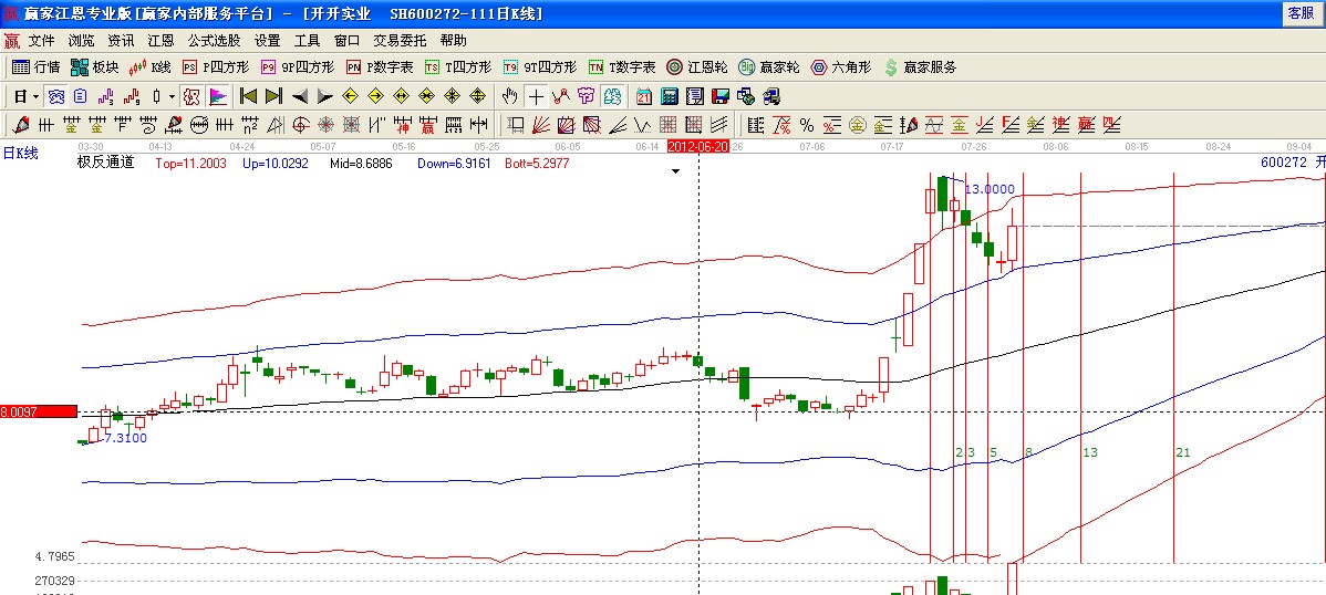 600272 一波快速上攻后展開回調(diào),判斷三個要素,時間、形態(tài)、股價;遇到紅色外軌線短線獲利15%賣出;