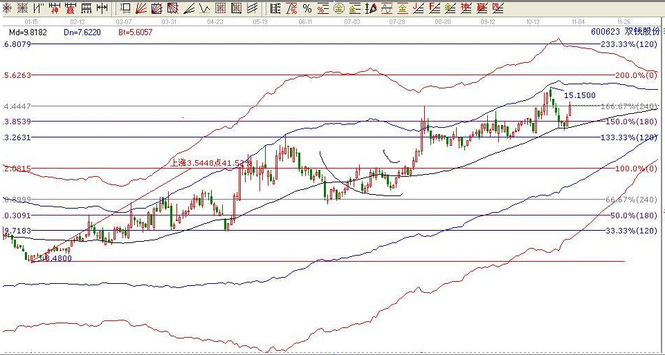 技術分析:該股一直保持向上的運行,趨勢保持良好如下圖,根據贏家極反通道來看,該股前幾日調整到生命線位置止跌,后市可以看高一線。該股壓力位應該在藍色上軌線15、30附近。