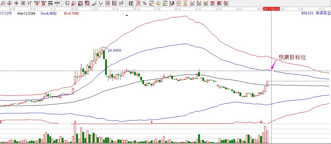 上面我們知道為什么選出來這個股票,又是怎么通過技術分析做好持股拿到利潤,我們就再分析一下這個股票未來能走到什么位置。從周線圖形上看,個股也放量突破了極反通道生命線的位置,和日線極反通道操作規則一樣,站穩一線看高一線,周線生命線突破,目標位就是周線藍色上軌線位置,17.00附近,可以繼續耐心持股。當然,市場沒有絕對,在持股過程中,我們還需要通過不斷提高止盈位來保證自己已有利潤的安全。