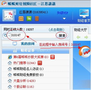 第四步:在大廳的左上角輸入贏家江恩房間號:310147,然后點擊搜索。在搜索結果右邊點擊贏家江恩進入即可。
