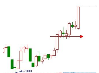 (四)大陽線后,回調(diào)至0。618位置或回調(diào)至大陽線底部位置。