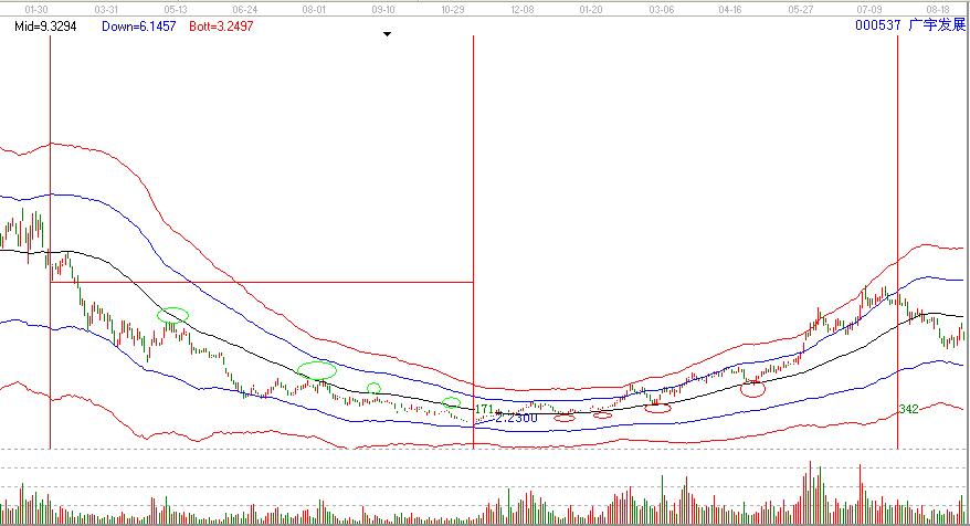 000537在2008年3月份11快附近破極反通道生命線開(kāi)始下跌,在下跌的過(guò)程當(dāng)中,都是碰到極反通道就下的,直到2008.11.月份見(jiàn)底后上攻建發(fā)集團(tuán)的生命線,短期的橫盤(pán)后展開(kāi)了一波小牛行情,在上升的過(guò)程當(dāng)中,每一次極反通道生命線的回踩都是你所介入的位置,極反通道買賣交易規(guī)則,這樣你就不會(huì)被黑馬拋棄了。直到上攻到2009.7月份11.00附近,中間有誤差【低點(diǎn)到高點(diǎn)剛好運(yùn)行了一個(gè)循環(huán)】