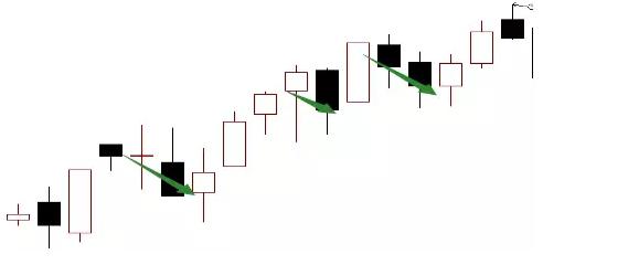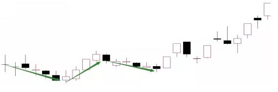 第二種途中洗盤。由于主力機(jī)構(gòu)手上籌碼不足但資金非常雄厚,所以不愿意在洗盤環(huán)節(jié)上浪費(fèi)時(shí)間,所以選擇邊拉升邊打壓的方式。主力每天采取盤中大幅振蕩的方式嚇出膽小投資者,陰陽相間的K線組合形態(tài),高效洗盤的同時(shí)還能持續(xù)推高股價(jià)。