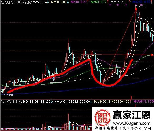 在介入之后繼續觀察,該股從6.68元上漲到12.32元的價格,將近翻了一倍,是翻倍牛股的形態,短期上漲獲利在20%以上,后期當均線出現拐頭向下的形態時,說明行情走勢將要出現下跌的行情,應該及時的賣出,或者是股價跌破5日均線的時候賣出獲利。