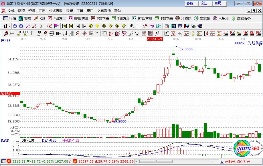 在2012年底部第一個漲停那天開盤買入該股,在12月24日出現了短線見頂就出貨了,后來又連續拔高就很難買回來了。這個股的操作錯誤就錯在我以長線思維買入,判定電影市場會有大爆發,認為光線的運營方式非常好,會形成市場和公司兩方面的雙擊。但是因為短線思維賣掉,導致錯過巨額利潤。這就是長線短做的錯誤。