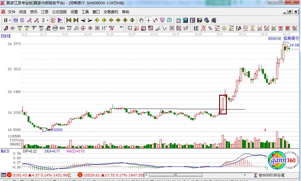 上面是招商銀行從1月份到現(xiàn)在的走勢圖,可以 說該股在幾年上半年,漲幅達到了36.6%。那這里大家就可以思考兩個問題。