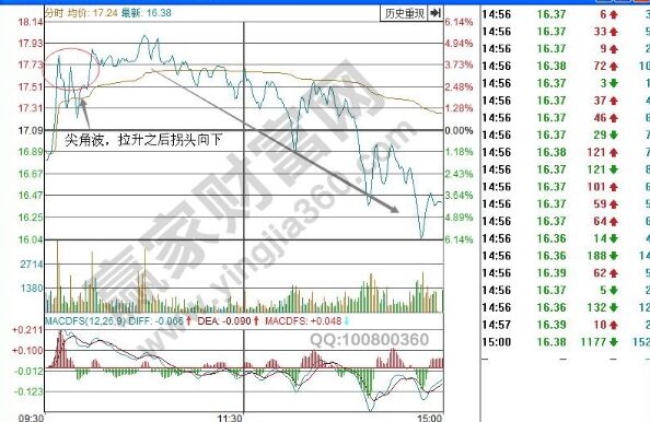 人線破,出尖角,高點(diǎn)不高先出貨。