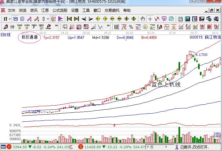 投資者如果能夠很好的把握這種走勢,獲得在后面的加速上揚的利潤也是非常有可能的,當然可能有的朋友對于此形態覺得還是有一定的風險的。當然結合極反通道指標,我們可以看到此時的弧度表現,主要是支撐線是在藍色上軌線的,而且股價是處于強勢區域中的,所以投資者在進行買賣分析的過程中,可以依據藍色上軌線和紅色上軌線來進行判斷阻力和支撐。