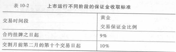 如表所示,自合約掛牌之日開始到交割月前二月的第十個交易日以前,交易所的保證金比例為9%;自交割月前二月的第十個交易日開始至交割月前一月的第一個交易日,交易所的保證金比例為10%。