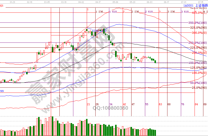 江恩理論中有一條分析規(guī)則四次遇阻力(支撐)而破,價(jià)格分析中波段百分比延伸線1倍循環(huán)180度2834點(diǎn),指數(shù)按規(guī)則第四次觸碰時(shí)擊破,結(jié)合趨勢(shì)判斷,極反通道藍(lán)色下軌線是止跌重要參考線。按歷史規(guī)律,市場(chǎng)不同階段的重要拐點(diǎn)均在極反通道5條線上,盤中擊破2834點(diǎn)時(shí),贏家江恩技術(shù)服務(wù)團(tuán)隊(duì)在VIP學(xué)員群中談到,4月22號(hào)提示風(fēng)險(xiǎn)帶領(lǐng)大家減倉(cāng)轉(zhuǎn)入休息,5月份二次在2840點(diǎn)是高風(fēng)險(xiǎn)者分批博弈,應(yīng)用區(qū)間交易法均獲得利潤(rùn)。市場(chǎng)下破2834點(diǎn),延續(xù)調(diào)整是低風(fēng)險(xiǎn)者空倉(cāng)或輕倉(cāng)者的機(jī)會(huì),市場(chǎng)走勢(shì)是有規(guī)律可循,而贏家江恩系統(tǒng)中極反通道就是一個(gè)直觀、有效的判勢(shì)工具,用規(guī)則紀(jì)律行事,買在支撐賣在壓力。本周是周線、日線時(shí)間窗口共振時(shí)間段,跟隨市場(chǎng)觀察是否與價(jià)格形成時(shí)價(jià)四方共振,6月10號(hào)盤中壓力是315度2844點(diǎn)、0度2860點(diǎn),盤中支撐是180度2800、135度2786點(diǎn)。操作策略,指數(shù)擊破黑色生命線進(jìn)入弱勢(shì)區(qū)域,整體持倉(cāng)保持在3-4成,做到進(jìn)可攻退可守。