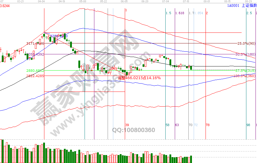 滬指昨天最低點與分析的支撐2878僅一點之差,但日線處于生命線下弱勢,深指與創業板明日將確認日線生命線支撐,幾大指數如都失守生命線則表示2822點的反彈結束,同時也印證了我們近十個交易日的策略,波段百分比延伸線2878、零度位2966點區間內運行持股等待,突破任何一個點位則將確認日線趨勢。20號贏家江恩系統培訓課中談到,失守2878點向下則看周線生命線(贏家學員參考極反通道查看具體位置)及缺口位置,突破2966點則再一次確認3048高點。預判目的是做應對計劃,是敬畏市場的一種體現,漲跌市場有自身運行規律,投資者做好持倉跟隨,是對交易、本金的負責。23、24號時間窗口后,下個一日線級別時間是8月1號。7月23號盤中壓力是135度2911點、180度2928點,盤中支撐是0度2860點、315度2844點【參考性強】。操作策略,指數極反通道生命線下弱勢震蕩,整體持倉保持3成以內,降低操作頻次。