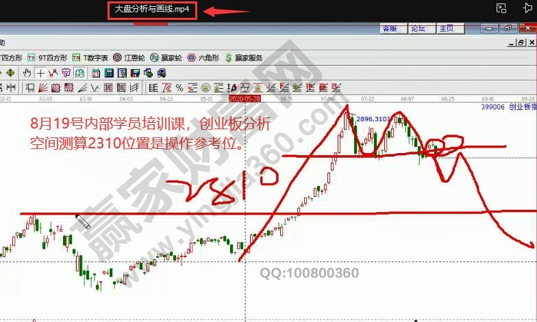 如圖2,8月19號正式學員內(nèi)部培訓課,講解創(chuàng)業(yè)板未來操作參考空間是2310附近;