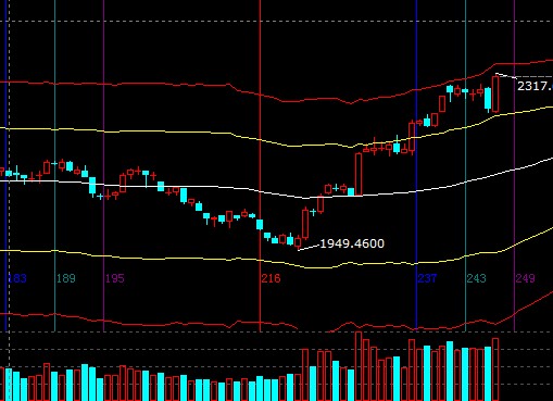 大盤在預期的60分鐘生命線多周期共振位置展開猛烈上漲態勢,“欲使之滅亡,必先使之瘋狂”詮釋了目前行情所處階段,短周期強勢外軌與日線紅色超強外軌區間為2320-2337,此空間保持謹慎做多,依據規則所持倉位應不斷提升止損位保護收益,短期支撐2288-2295,外軌線阻力2320-2337;