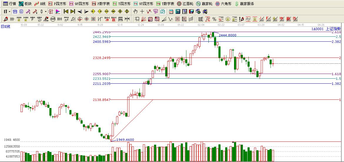 ☆依據贏黃金價格延伸線提示:大盤失手黃金分割2倍位置2328再度出現恐慌性殺跌,短期這里構成壓力。不過看空為主。