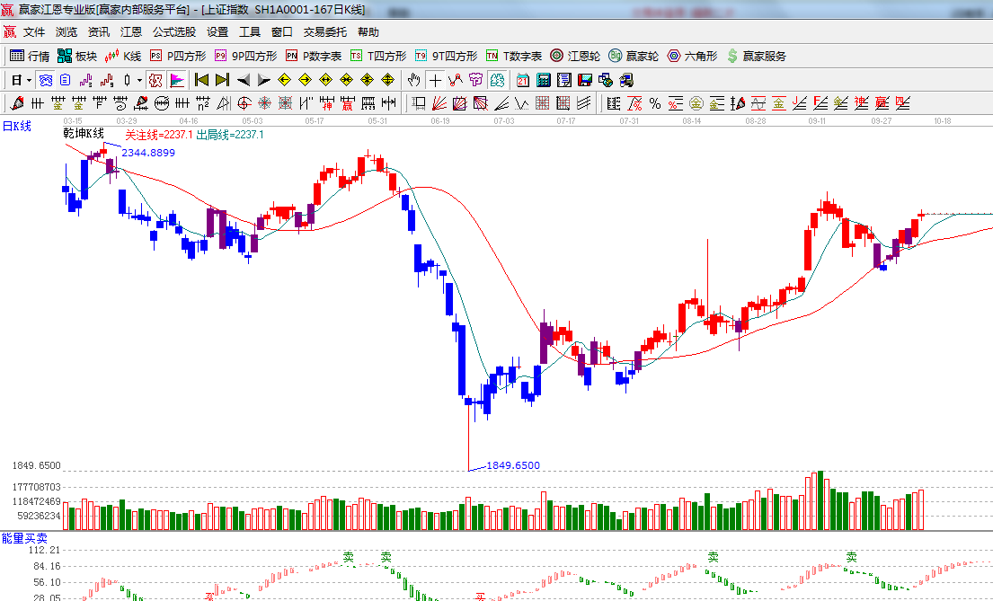 ★依據(jù)贏家江恩系統(tǒng)能量買賣提示:紅色柱子逐漸加長(zhǎng),多方占優(yōu);