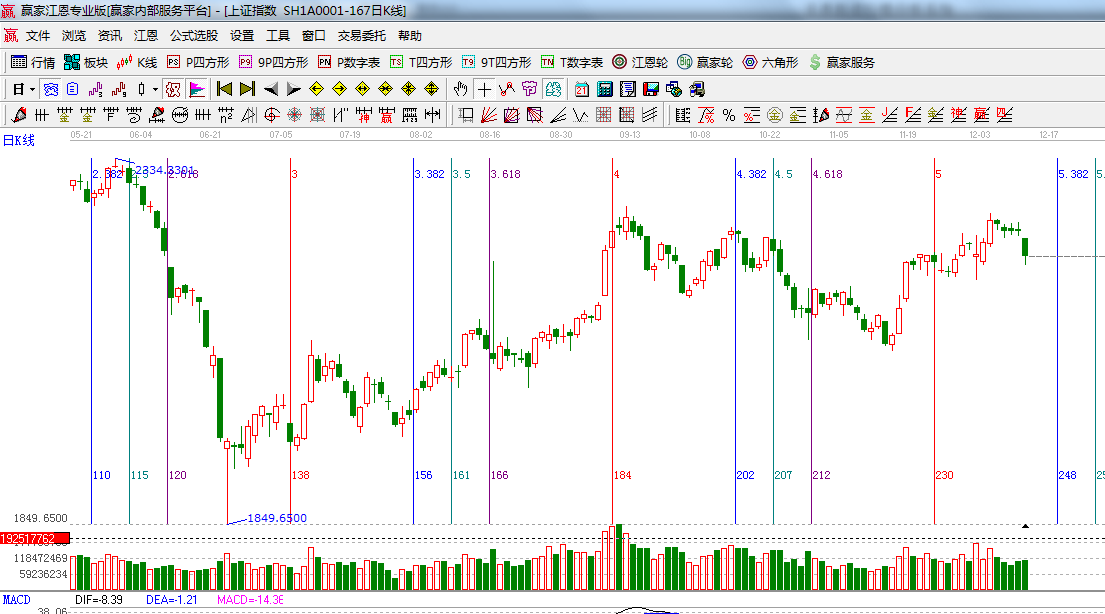 ★依據贏家江恩系統黃金時間周期線提示:17號為黃金分割的0.382的位置,重點觀察日線k線形態;