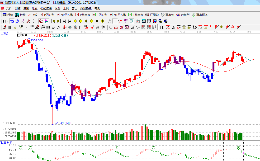 早盤滬深兩市小幅低開隨后圍繞2200點窄幅震蕩,臨逢年底各路資金的結算會影響市場的流動性,預計近期市場將圍繞江恩軟件極反通道生命線附近上下震蕩,波段思路對明年波段行情較看好,投資者可借助市場震蕩對部分品種進行逢低布局;今日盤面上互聯網、傳媒娛樂等板塊飆漲,金融、農業、鋼鐵等板塊表現低迷成交量萎縮。