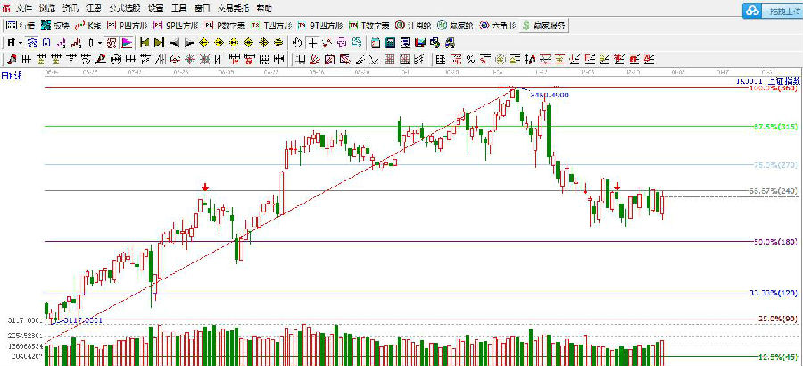 江恩看盤綜述:依據贏家江恩技術工具分析得出:周四,滬指探底回升,重新收在60分生命線之上。整體仍在震蕩區間徘徊,盤面上種種跡象表明,指數調整空間已經被基本封殺,如伴隨量能的配合有效突破3305點,指數將結束調整迎來反彈。周線時間窗口臨近,耐心觀察,等待確認性的轉折出現,如能有效放量,或將釋放指數見底信號。操作上,逢低可考慮分批低吸。