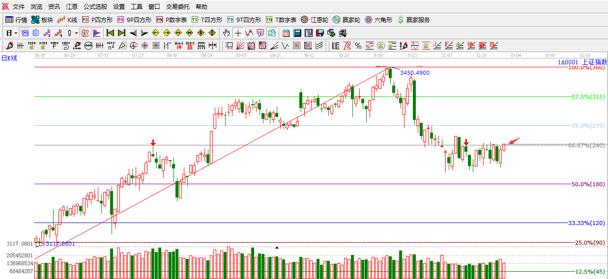 江恩看盤綜述:依據贏家江恩技術工具分析得出:周五,指數震蕩走高,尾盤收復3305點關鍵位置,是一個好的信號,但美中不足的是量能同比萎縮,接下來繼續關注3305點突破的有效性。如新年第一個交易日,如能繼續保持在3305點之上,指數有望繼續看高日線生命線3342點附近。不然繼續保持謹慎,操作上,繼續控制倉位的前提下,重點關注成長性良好有業績支撐的小盤股。