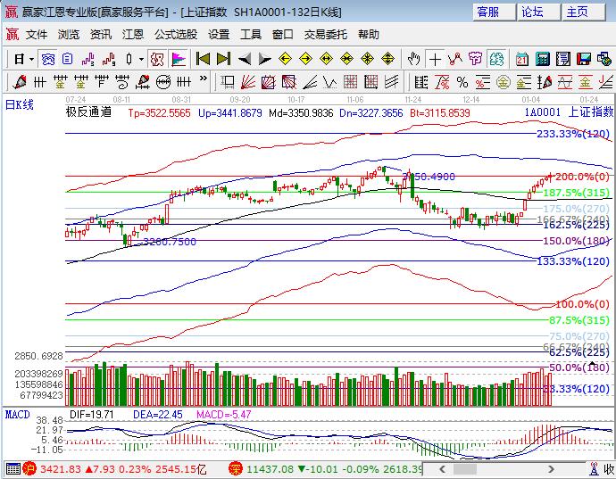 周三滬指低開震蕩延續小漲且呈現九連陽走勢,早盤震蕩上攻,午盤出現一波回調在權重帶動下又收復,深市幾大指數均下跌。板塊方面,石油、銀行權重大漲,保險及周期股鋼鐵、有色、化工走弱;題材方面,區塊鏈和天然氣引領概念股,石墨烯、豬肉、量子通信、鋰電、芯片和5G概念跌幅靠前,個股下跌居多成交量較周三略有增加。技術方面,滬指日K線收在江恩百分比2倍零度位3418點上方,未來幾天還將圍繞此線反復,MACD最高柱子已確立,已連續兩天提示短線可做高拋。昨日午盤脈沖式下行在近段時間還會出現,預計極別會越來越大,日線前高及極反通道外軌線是強壓力,短周期30分鐘回踩生命線的動作還在持續中。創業板指江恩百分比180度1780位置不破慢慢修復將收復生命線,上證50進入前期頭部后橫盤可微調等待均線跟隨。倉位中長線4成倉持股不動,短線倉3成高拋后等待再次出手信號,暫定60分鐘生命線為下次信號買點,3395、3385為日內支撐,3424、3433為日內壓力。僅供參考,不構成任何投資建議。