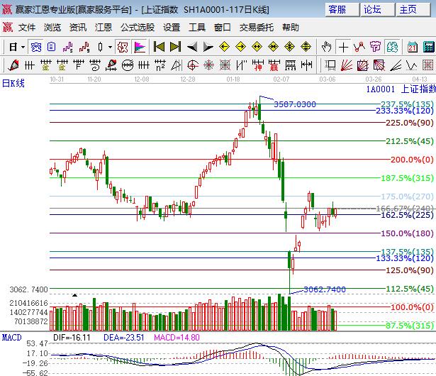 周四幾大指數低開縮量震蕩小漲,主板僅白馬股表現,市場熱點依然在題材小票上。板塊方面,地產、保險漲幅跑贏大盤,銀行、煤炭有色逆勢下跌;題材方面,雄安、生物科技、 高送轉領漲,獨角獸、工業互聯網概念分化,芯片、鋰電走弱,個股上漲居多成交量持續萎縮。技術方面,滬指8號時間窗站穩江恩百分比震蕩帶,短周期有延續上攻的勢頭,日線下個時間窗口是14號,日線江恩百分比225度與240度對應的3271-3287點為震蕩支撐帶,上方270度3321點為盤中阻力;創業板今日回探30分鐘生命線,震蕩不破等待60分鐘生命線上移,同時日線均線系統也在跟隨,目前已橫盤5天,創業板時間窗口為下周初;上證50繼續圍繞百分比270度2880震蕩,此線站穩則上方位置是315度2945附近。最近盤面上,歷史上持續調整的股票,股價打6折、7折、8折的個股,經過5-10天的小陽線緩漲,會出現一到二根中陽,這是近兩天盤面其中一個表象;再者等待科技、工業互聯網短期調整后第二波。今日支撐3271、3262,今日阻力3304、3320,僅供參考,不構成任何投資建議。
