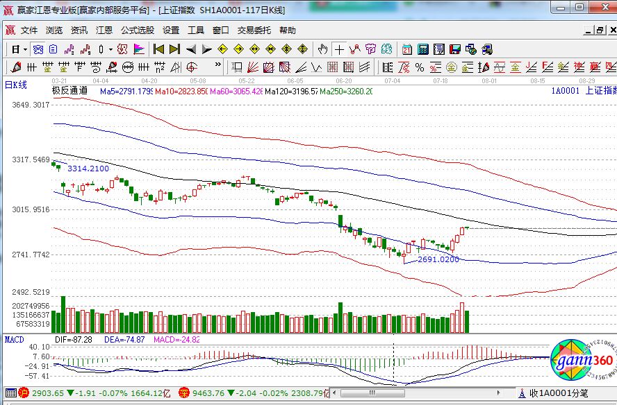 滬指跌0.07%,報收2903點;深成指跌0.02%,,報收9463點;創業板漲0.17%,報收1632點。從板塊漲幅上看,海南、鋼鐵、自由貿易港、汽車整車、啤酒、可燃冰等板塊上漲;次新股、食品安全、服裝紡織、證券、環保工程等板塊跌幅居前。滬股通凈流入14.7億,深股通凈流入3億。相應的極反通道指標的支撐壓力提示,如下圖所示: