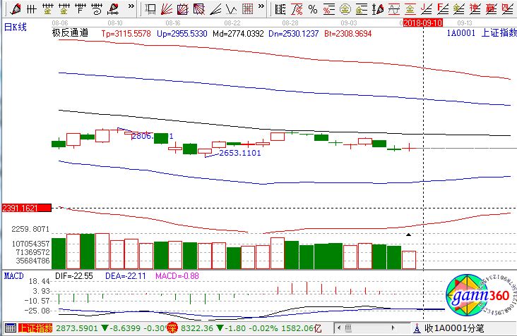 截至收盤,滬指漲0.40%,報(bào)收2702點(diǎn);深成指跌0.02%,報(bào)收8322點(diǎn);創(chuàng)業(yè)板漲0.17%,報(bào)收1425點(diǎn)。從盤面上看,黃金、煤炭、機(jī)場航運(yùn)、醫(yī)藥電商、鈦白粉、水泥等板塊漲幅居前;電子發(fā)票、國產(chǎn)軟件、芯片、網(wǎng)絡(luò)安全、5G、集成電路等板塊跌幅居前。滬股通凈流出500萬,深股通凈流出1.2億。相應(yīng)的極反通道指標(biāo)的支撐壓力提示,如下圖所示: