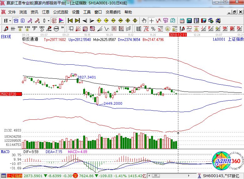 滬指跌0.82%,報收2584點;深成指跌1.41%,報收7624點;創業板跌1.06%,報收1326點。盤面上看,油改、5G、ST板塊、充電樁等板塊漲幅居前;高送轉、知識產權保護、軍工、生物醫藥、雄安新區等板塊跌幅居前。滬股通凈流出15億,深股通凈流入4000萬。相應的極反通道指標的支撐壓力提示,如下圖所示: