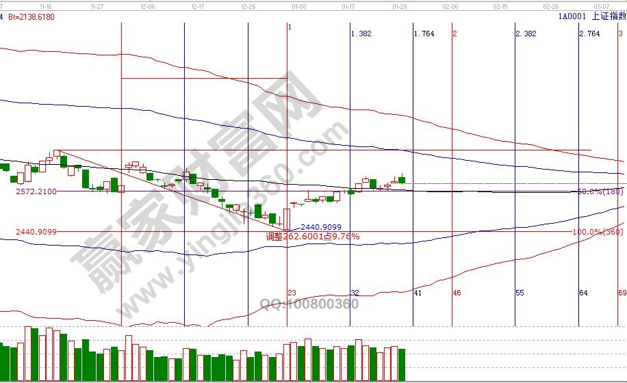 上周五分析中談到本周29號時間窗口,壓力2635點不能突破則短線將進入調整,市場將形成短線拐點,再度回探日線生命線2572點。空間方面,波段百分比顯示,昨天高點2630與180度壓力2634點僅相差4個點,29號支撐是225度(2585點)、240度(2569點),29號是假期前最后一個時間窗口,下個時間窗是2月4號,因假期向后推遲。操作策略,大盤日線生命線上運行波段看多,這里是短線回調,不改變波段上漲判斷,調整對于空倉者是一次建倉機會,對于高倉位者是一次調倉機會。