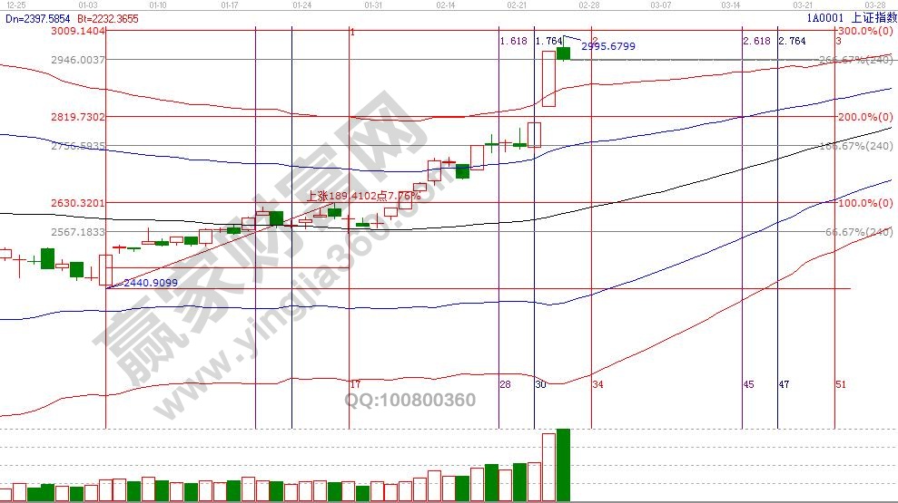 操作策略,大盤日K線突破紅色外軌線,享受瘋狂的同時不斷提高止賺位,注意時間窗口遇反壓力風險,分批高拋紅色、藍色上軌線個股,拋售倉位等待市場確認2900支撐在做決策是否參與,整體倉位保持在5-6成。