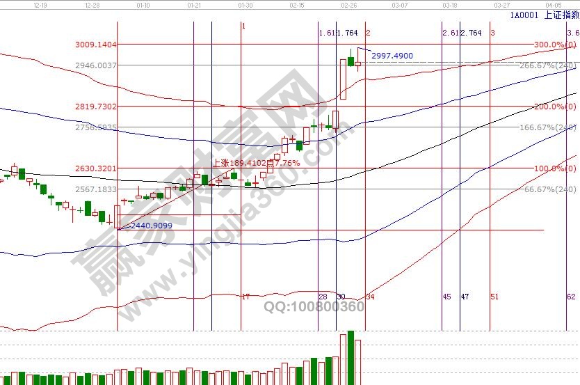 28號(hào)是大盤日線時(shí)間窗口,繼續(xù)觀察市場(chǎng)橫盤后短線方向選擇,依據(jù)規(guī)則紅色外軌線為短線風(fēng)險(xiǎn)區(qū),空間點(diǎn)位上,江恩百分比、價(jià)格四方形顯示,28號(hào)2914、2925點(diǎn)為支撐,2974、2999點(diǎn)為壓力,3月份第一個(gè)時(shí)間窗口是7號(hào)。操作策略,大盤日K線突破紅色外軌線,注意時(shí)間窗口后遇反壓力風(fēng)險(xiǎn),持股上享受瘋狂的同時(shí)不斷提高止賺位策略,即保護(hù)了利潤(rùn)又可將利潤(rùn)最大化,或主動(dòng)分批高拋紅色外軌線個(gè)股,拋售倉(cāng)位等待市場(chǎng)回歸通道內(nèi)在做決策是否參與,整體倉(cāng)位保持在6成左右。