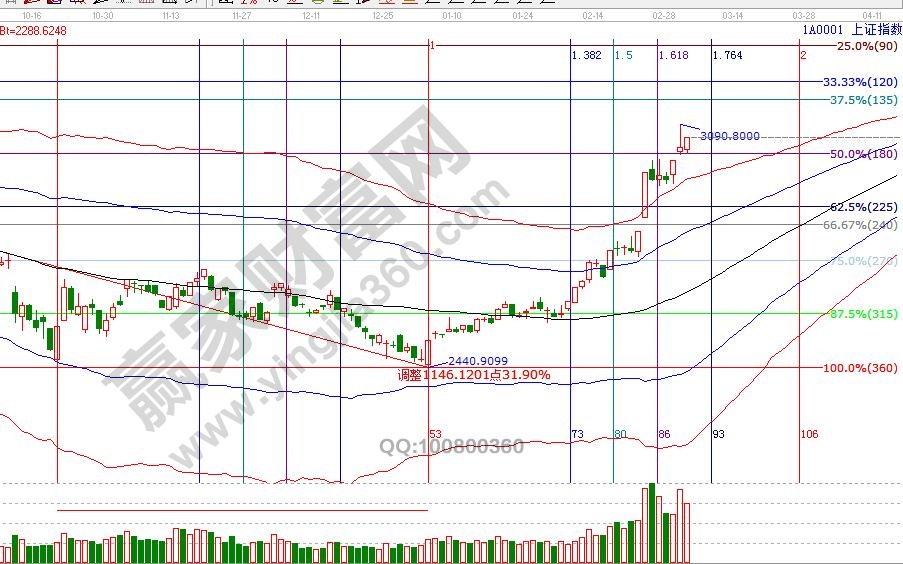 大盤日K線在紅色外軌線外極強區震蕩上攻,縱觀歷史突破紅線后,量能決定了后市持續性,未來K線依托紅線運行是強勢表現,回歸通道下踩藍色上軌線是正常回探,大波段空間參考周線生命線(2860)、藍色上軌線(3300)。短期跟蹤好時間窗口市場表現,震蕩上攻期空間點位上關注,江恩輪中輪、四方形提示壓力3074、3097點,3036、3016支撐,7號時間窗口觀察是否給出短期方向,最晚遞延至月中12、14號。操作策略,大盤維持日線震蕩上行,持股上享受瘋狂的同時不斷提高止賺位,即保護了利潤又可將利潤最大化,整體倉位保持在6成左右。
