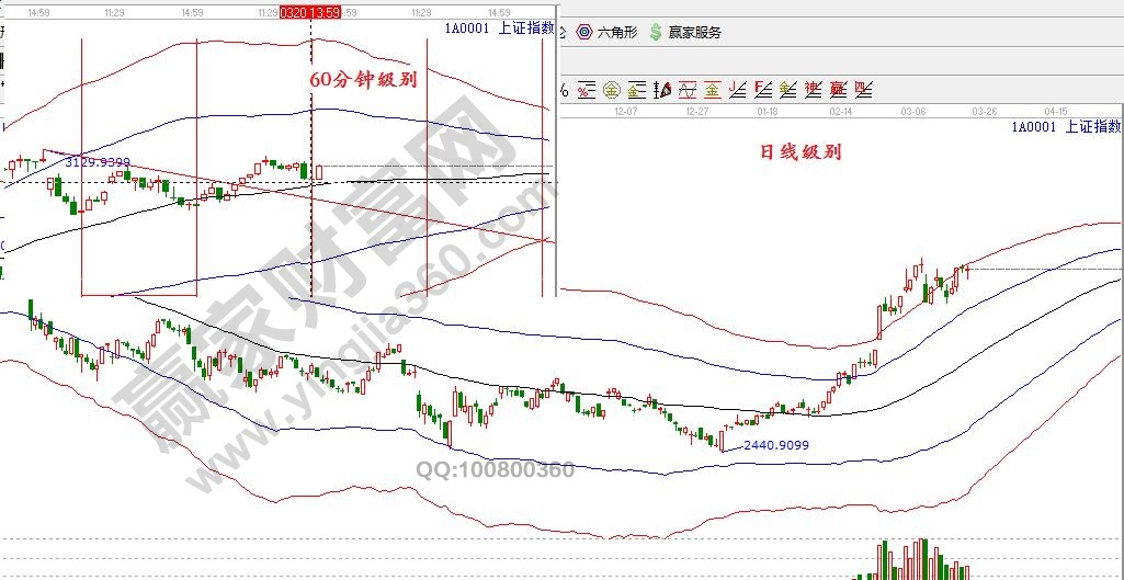 大盤日線繼續(xù)圍繞極反通道紅色外軌線震蕩運行,短期繼續(xù)關(guān)注60分鐘生命線,不破趨勢延續(xù)??臻g上,3051為支撐點,3130為阻力點;時間上,關(guān)注本月26日。對應操作上,指數(shù)高位震蕩,不破3051,可繼續(xù)把握個股機會。節(jié)奏上,逢高兌現(xiàn)持續(xù)上攻遇阻品種,切換至生命線附近滯漲股,倉位保持4成。