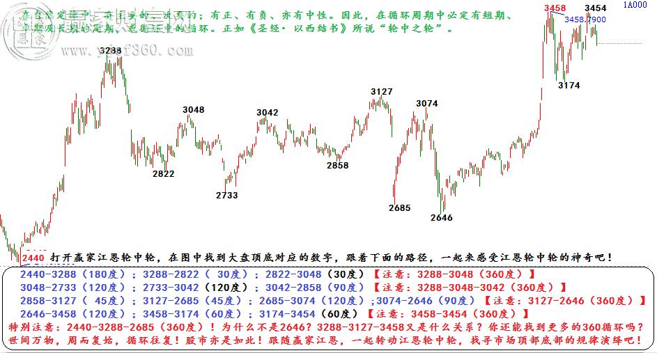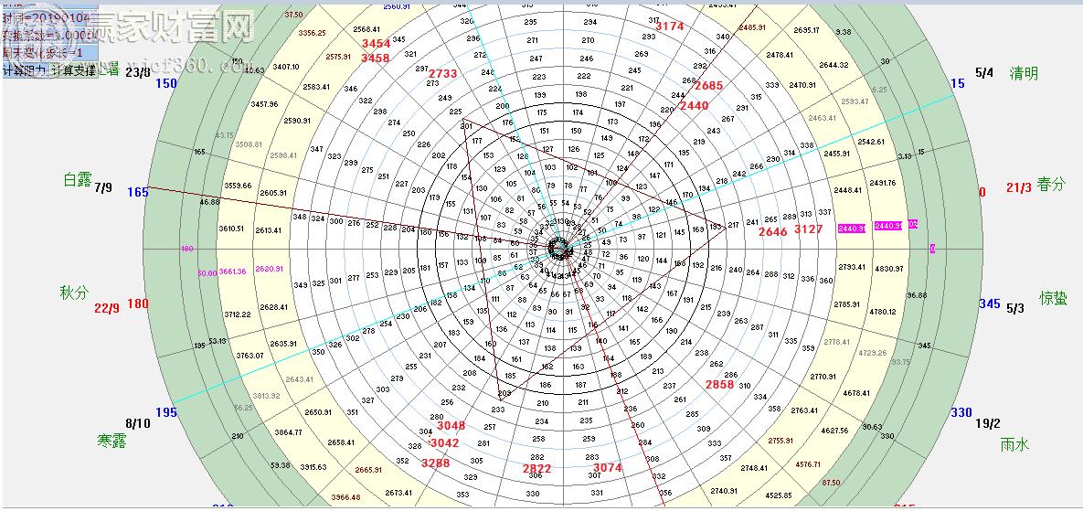 圖形解析:打開贏家江恩輪中輪,在圖中找到大盤頂底對應的數字,跟著下面的路徑,一起來感受江恩輪中輪的神奇吧!