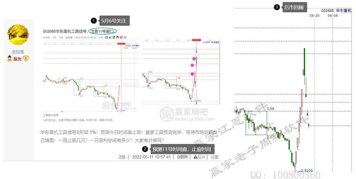 一、在市場當中會買更要會賣!贏家的時間預測技術不止能確定買點信號,更能決定賣點的規避信號!贏家聊吧:盤前預測、盤中跟隨、盤后回顧!上周跟蹤的華東重機,止盈后,再次回顧迎來什么趨勢表現呢?論提前看得懂時間的重要性!