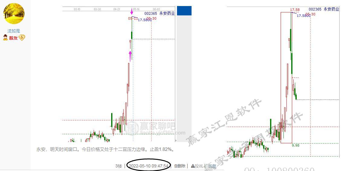 二、永安藥業回顧:根據工具信號上周10號止盈,今日再來復盤,再次理解:時間是第一位的,永不確認轉勢,直至時間超越平衡!