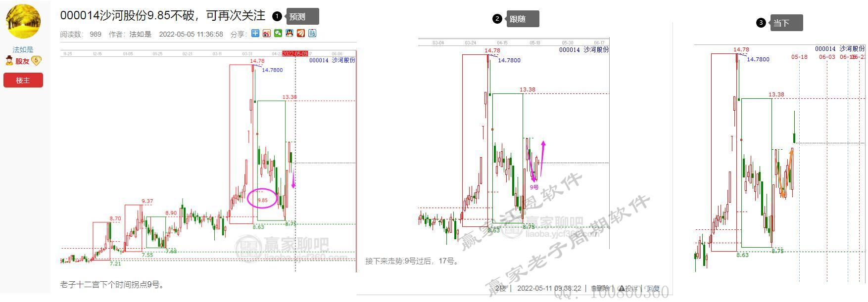 四、沙河股份,老子十二宮工具信號完整的跟隨留痕。5號預測下跌回落支撐至9號,9號預測上漲至17號窗口。股隨圖動!
