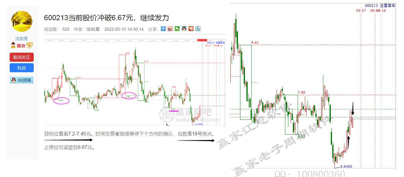 八、亞星客車,時間和價格都按照預測給了。15號預測價格7.2-7.45元。時間18號窗口。后市止盈信號,4天工具信號利潤空間5.88%元!再次驗證何時何價的技術信號!