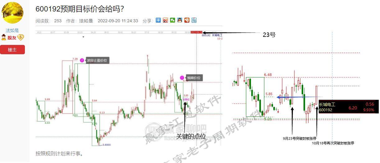 后期驗證:當23號來臨,恰逢價格突破5.85直接以漲停的姿勢迎接6.48的預(yù)期價!當?shù)诙喂蓛r再次突破關(guān)鍵的點位5.85元時,再次觸發(fā)10cm漲停板!體驗下十二宮工具信號關(guān)鍵價格的預(yù)測魅力!