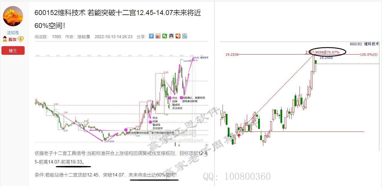回顧驗證:10月13號運用江恩工具信號選出后,波段持續(xù)上攻!當突破預測的14.07元開始給板加速抵達目的地19.33元。空間到達后,就是止盈位。走出70%上行利潤兌現(xiàn)!