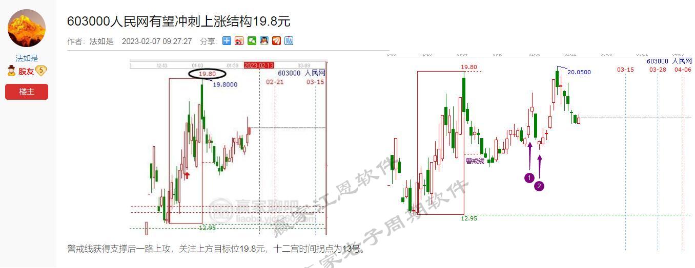 603000人民網,2月7號依據十二宮工具分析,當上漲結構形成,趨勢上形成風險信號,十二宮的上漲結構起始時間是12月15號,截止時間是1月4號??梢钥闯?/span>4號之后,股價神奇般的一路回調。
