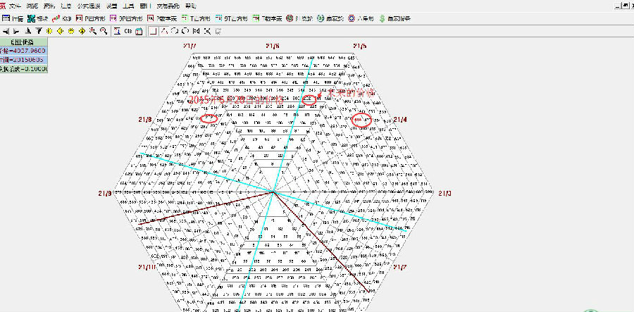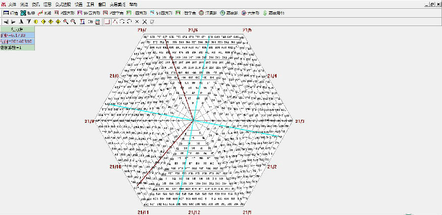 學(xué)習(xí)江恩理論的朋友,大部分都了解,江恩會(huì)運(yùn)用大量的多邊形來繼續(xù)擰市場(chǎng)的時(shí)間和價(jià)格的分析,例如江恩正方形,江恩輪中輪等等。江恩六角形其實(shí)是贏家江恩軟件中的一個(gè)工具,具體的圖形如下圖。