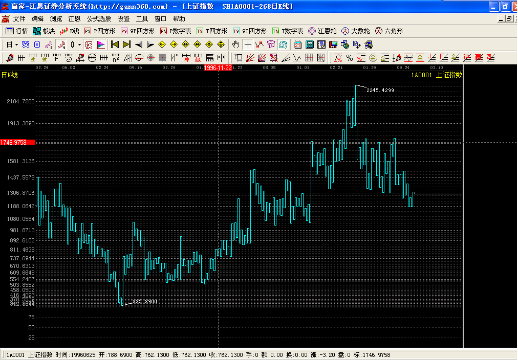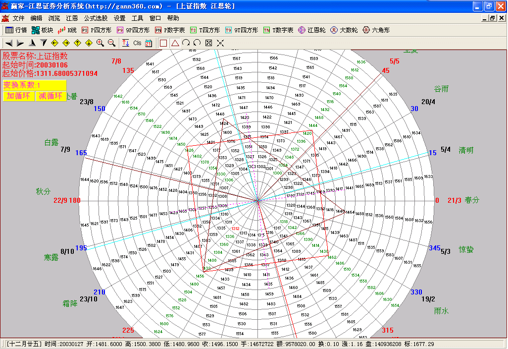 本軟件除實現了江恩的經典判市工具:包括江恩輪、價格正方形、九格價格正方形、時間正方形、九格時間正方形、六角形、角度線、江恩計算器、時間及價格循環線、時間周期線、江恩價格回調帶外,增加了百分比線、百分比延伸線、黃金延伸線、黃金回調帶、黃金分割阻力支撐線、k線價格四方形、自定義時間價格計算器、黃金時間周期線、螺旋時間周期線、自定義周天江恩時間循環線、平方時間循環線、三點周期線、螺旋歷法時間循環線、k線時間論中論(變盤點)、k線時間四方形(變盤點)、時間轉折日提示、24節氣轉折日提示、神奇周期線、神奇價格線、贏家周期線、自定義時間周期線、趨勢轉折線、點位跟蹤轉折線。