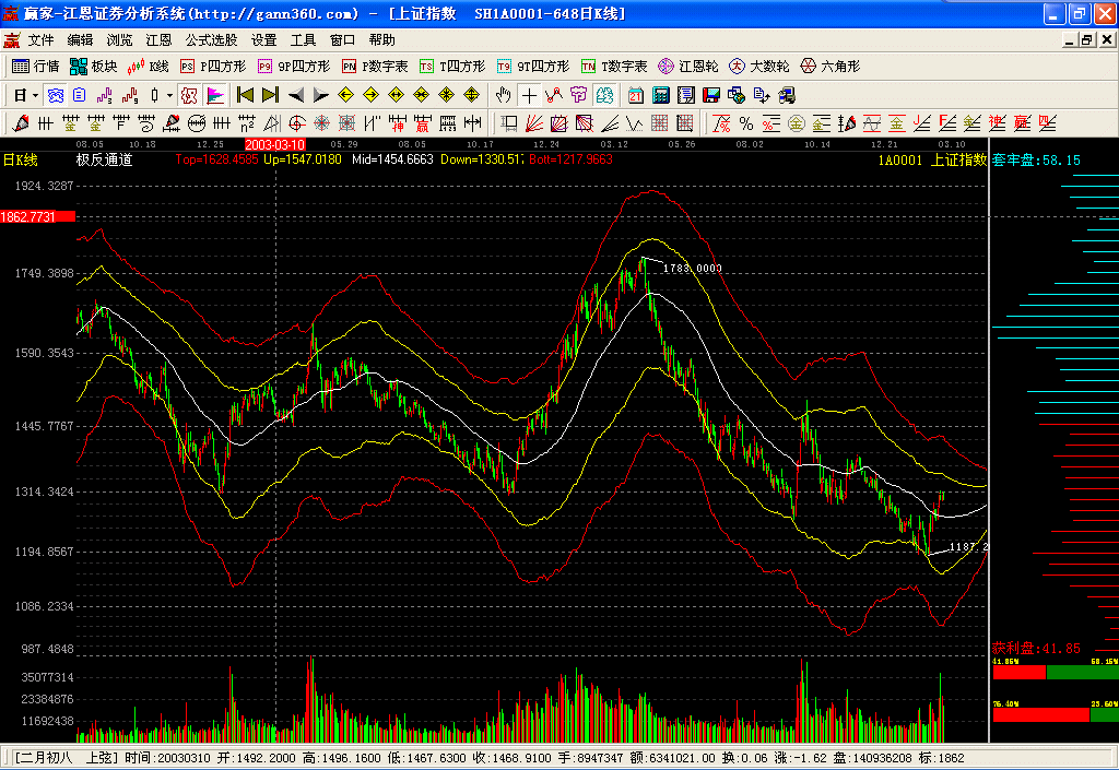 (2)普及版:經典神器(極反通道),加上基礎的價格和時間工具,簡單智能的預判市場多空趨勢及具體買賣位置。